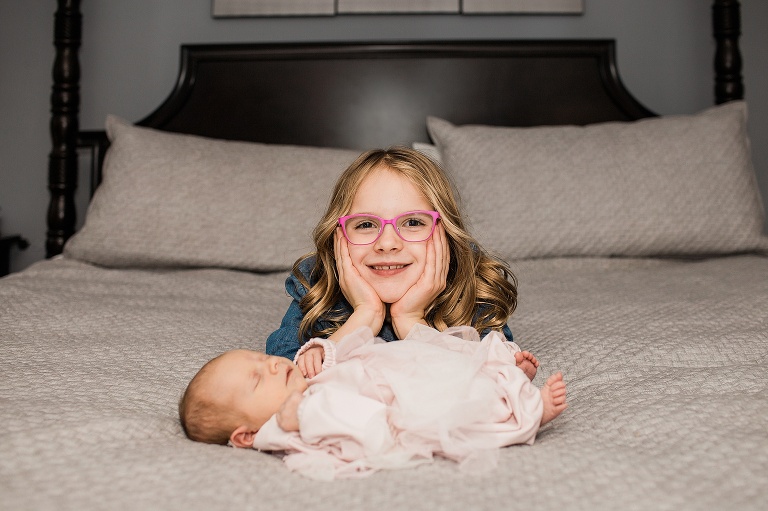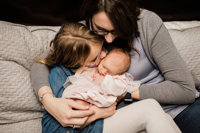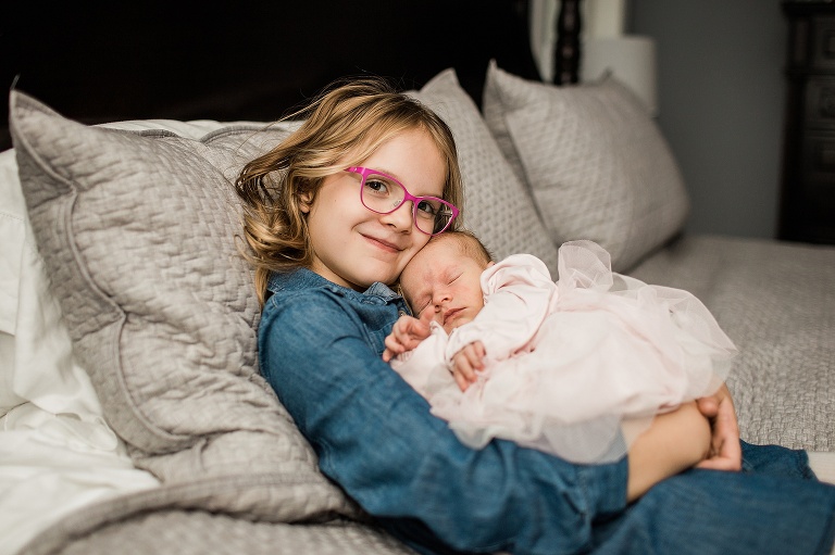 Once we were finished with our initial new family photos, we had to make sure we got some shots of the girls together. Big sister was so excited to get to hold baby sister and you can see how much she loves her!